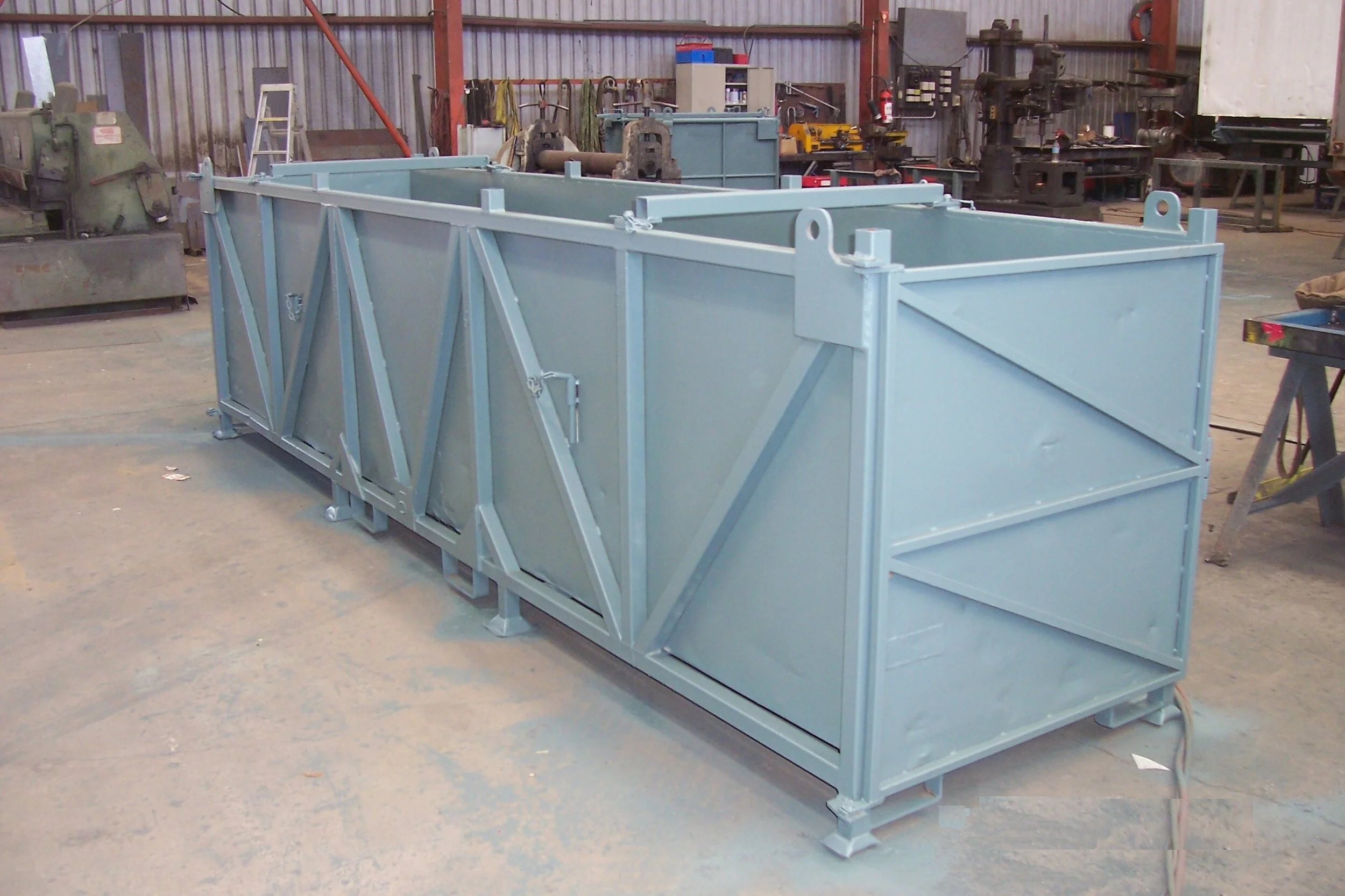 Crane cages are very versatile. Our cages have fork pockets for transport via forklift and also crane sling points for crane lifting. As a forklift cages they can be used in conjunction with our container ramps to load via trolley or forklift providing easy access.